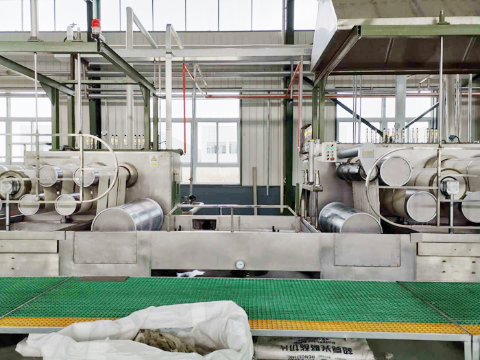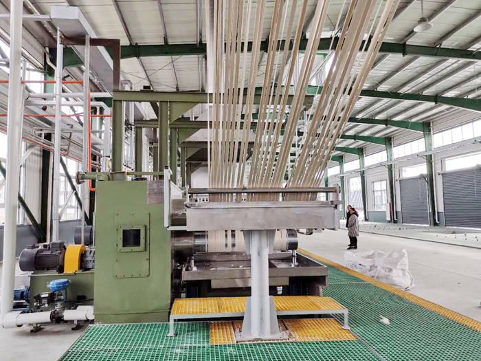 化纖生產(chǎn)是長流程連續(xù)化生產(chǎn),一般要求一年內無故障連續(xù)運轉8000h以上,即化纖設備運轉的可靠性要求高于一般紡織機械設備?;w一般分為人造纖維和合成纖維兩大類。我國化纖以合成纖維為主,而合成纖維中又以滌綸纖維為重點發(fā)展,其生產(chǎn)規(guī)模越來越大,年產(chǎn)3萬噸至10萬噸的滌綸短纖維生產(chǎn)設備已趨成熟。本文以年產(chǎn)3萬噸滌綸短纖維生產(chǎn)設備為例。滌綸短纖維生產(chǎn)設備包括紡織聯(lián)合機和后處理聯(lián)合機。
